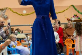 Показывает спектакль, танцует и поёт с детьми известная и любимая многими нашими гостями актриса и певица Ксения Олишевская.