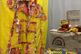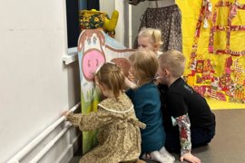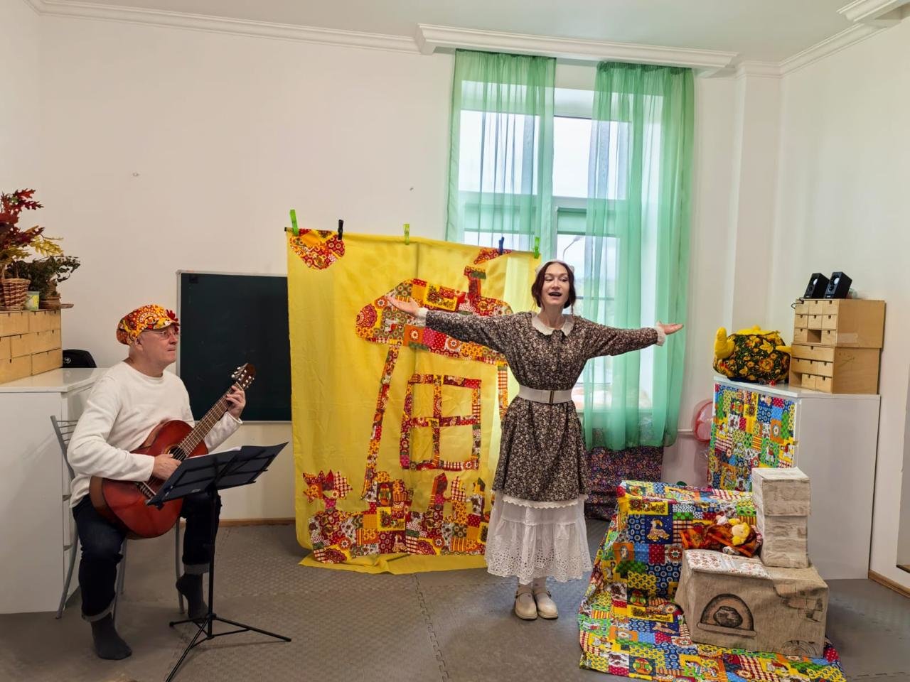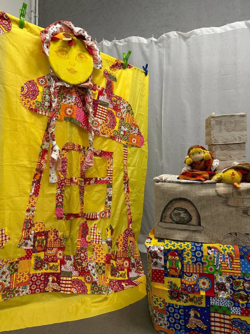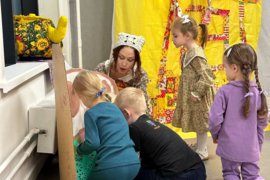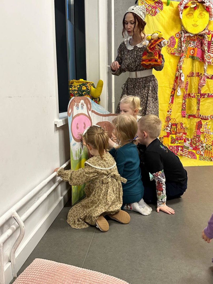 В спектакль органично вплетены сюжеты русских народных сказок,и всё представление сопровождается чудесными русскими народными песнями, играми и хороводами.